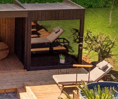 Il più grande produttore di tinozze al mondo, Kirami, ha sviluppato il nuovo concetto Kirami FinVision® Annex- un sogno che diventa realtà per i designer di giardini. Il concetto di Annex comprende una sauna, un lounge, una terrazza e uno spogliatoio della serie FinVision® Misty. Ognuno può utilizzare i moduli perfettamente collegabili tra loro per costruire un'oasi all'aperto che si adatti perfettamente allo spazio disponibile e alle proprie preferenze. È inoltre possibile aggiungere alla terrazza una tinozza e un barbecue come tocco finale per un perfetto paradiso in giardino.