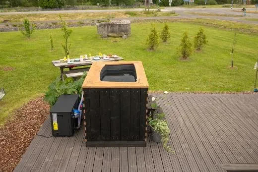 Nella nostra gamma Premium, la NordicIce S Dualex, è una tinozza rettangolare rivestita all’esterno da pannelli. Questa tinozza completamente isolata, dotata di una guscio interno in plastica, dispone da un lato di una panca scolpita in pietra grigia. La panca rimane saldamente in posizione in fondo alla tinozza, grazie al peso delle due gambe in pietra e della panca stessa. La panca è principalmente grigia ma la tonalità della pietra può variare. La leggerezza e la dimensione della tinozza la rendono facile da installare in piccoli cortili o su terrazze. La tinozza è adatta a uno utenti e può essere installata utilizzando un metodo plug-and-play.