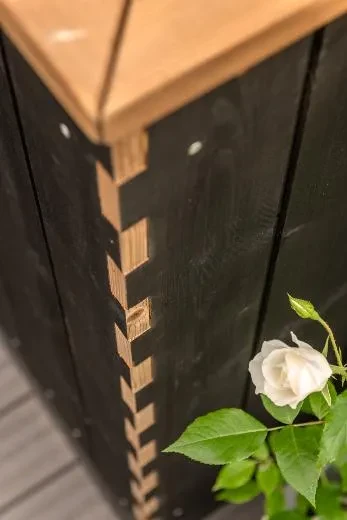 Il rivestimento esterno è un pannello aerodinamico in legno di conifere trattato termicamente. Il trattamento termico migliora la resistenza del legno alla putrefazione e riduce l'assorbimento di umidità. L'elegante finitura nera brillante del legno trattato termicamente dura a lungo e protegge il legno dallo sporco e dai raggi UV. Questo materiale per pannelli, riciclabile e di facile manutenzione, è utilizzato anche nei moduli Kirami FinVision® Misty e collega splendidamente tinozza e sauna grazie al suo rivestimento esterno. Il grigio chiaro e vibrante come colore interno è sempre intramontabile, elegante e si integra perfettamente con l'ambiente circostante. La superficie interna è in plastica grigio scuro di facile manutenzione. Questo colore grigio trendy e intramontabile si fonde perfettamente con vari spazi esterni.